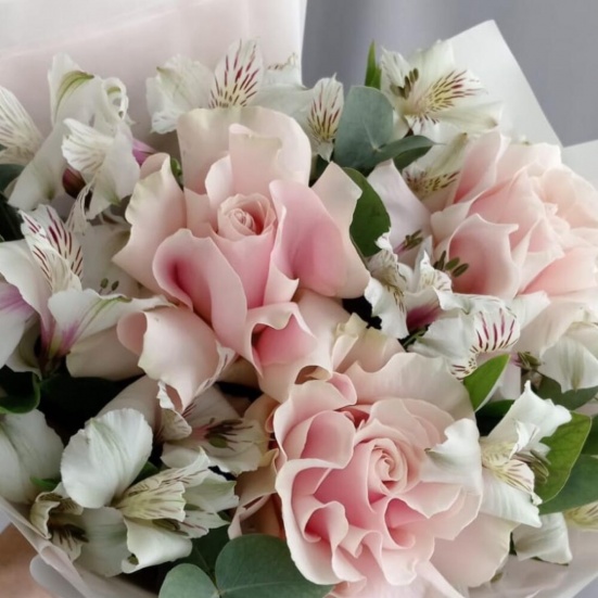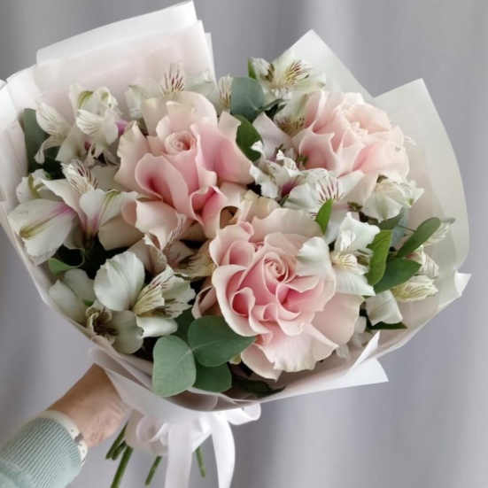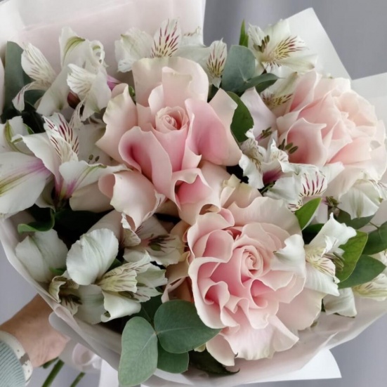 Букет из 3 французских роз и Альстромерии в Таганроге