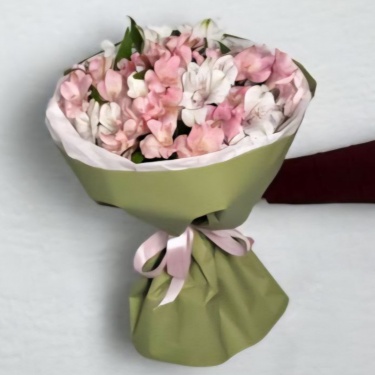 Решил сделать подарок подруге и выбрал этот букет. Прекрасное сочетание розовых гербер и белых роз. Смотрится изумительно. Доставка сработала на пять. Подруга была очень рада