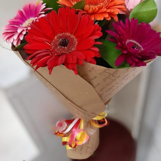 Решил сделать подарок подруге и выбрал этот букет. Прекрасное сочетание розовых гербер и белых роз. Смотрится изумительно. Доставка сработала на пять. Подруга была очень рада