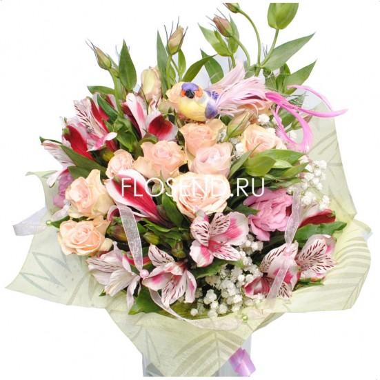 Решил сделать подарок подруге и выбрал этот букет. Прекрасное сочетание розовых гербер и белых роз. Смотрится изумительно. Доставка сработала на пять. Подруга была очень рада