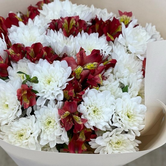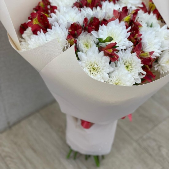 Решил сделать подарок подруге и выбрал этот букет. Прекрасное сочетание розовых гербер и белых роз. Смотрится изумительно. Доставка сработала на пять. Подруга была очень рада