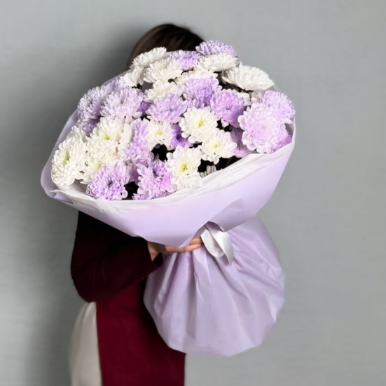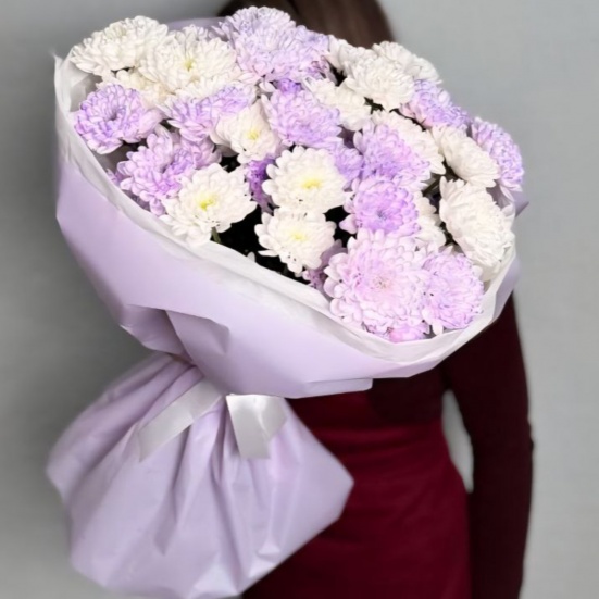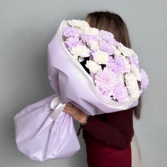 Букет из 9 фиолетовых и белых хризантем в Таганроге