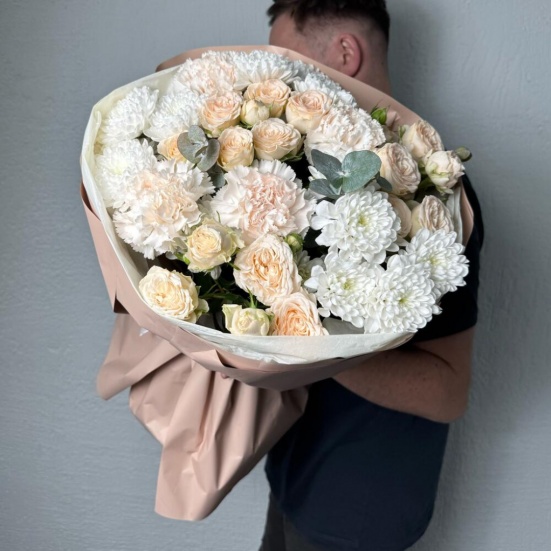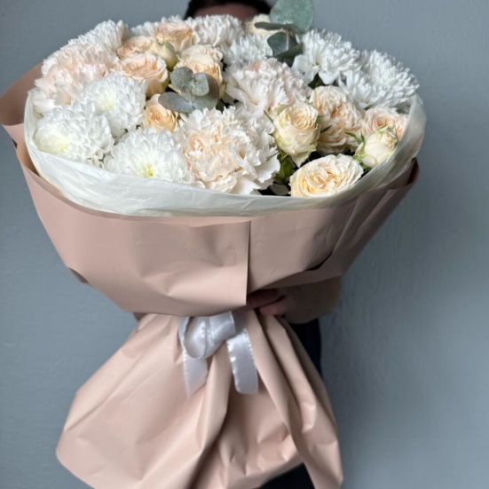 Решил сделать подарок подруге и выбрал этот букет. Прекрасное сочетание розовых гербер и белых роз. Смотрится изумительно. Доставка сработала на пять. Подруга была очень рада