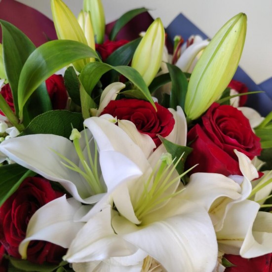 Решил сделать подарок подруге и выбрал этот букет. Прекрасное сочетание розовых гербер и белых роз. Смотрится изумительно. Доставка сработала на пять. Подруга была очень рада