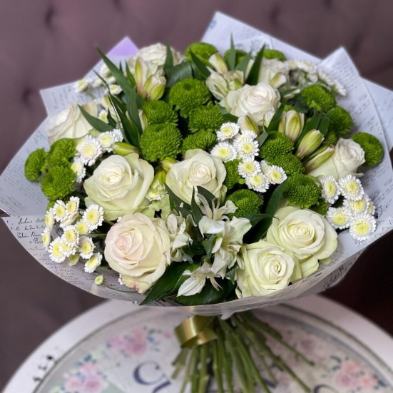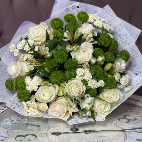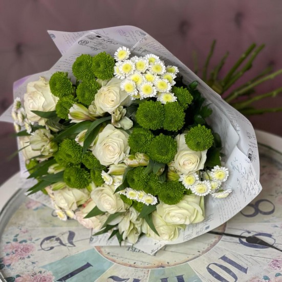 Букет «Розы и зеленые хризантемы» в Таганроге
