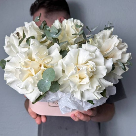 Композиция из белых французских роз и эвкалипта олицетворяет изысканность и утонченность. Нежные лепестки роз создают атмосферу легкости и чистоты, символизируя искренность чувств и чистоту намерений. Эвкалипт добавляет композиции свежесть и природную энергию, подчеркивая гармонию природы. Такое сочетание цветов идеально подходит для выражения нежных эмоций и восхищения красотой окружающего мира.